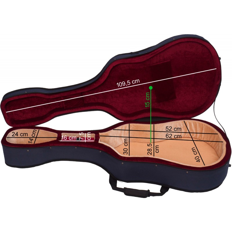 Custodia in schiuma per chitarra acustica Classic Blu Marino, Borgogna-Beige